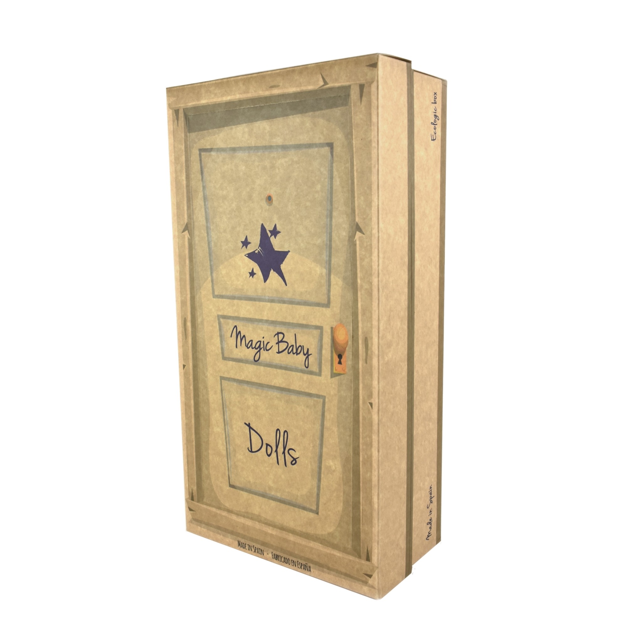 Muñecas Magic Baby fabricadas en España. En caja ecológica. Su largo pelo se puede cepillar. Su ropa se puede lavar a baja temperatura.