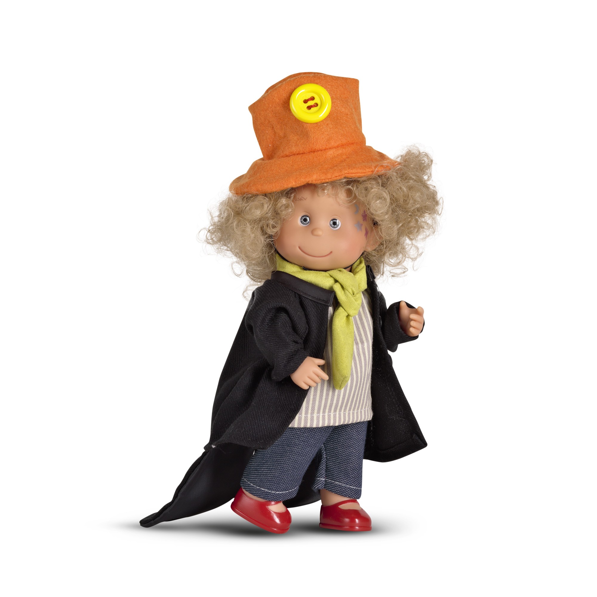 Muñeco fabricado en vinilo con cuerpo duro y aroma a vainilla. Cabeza, brazos y piernas articulados. En una caja ecológica hecha de material reciclado.